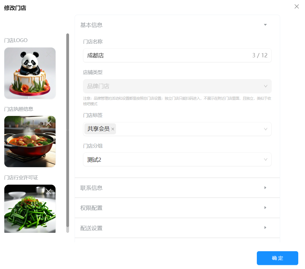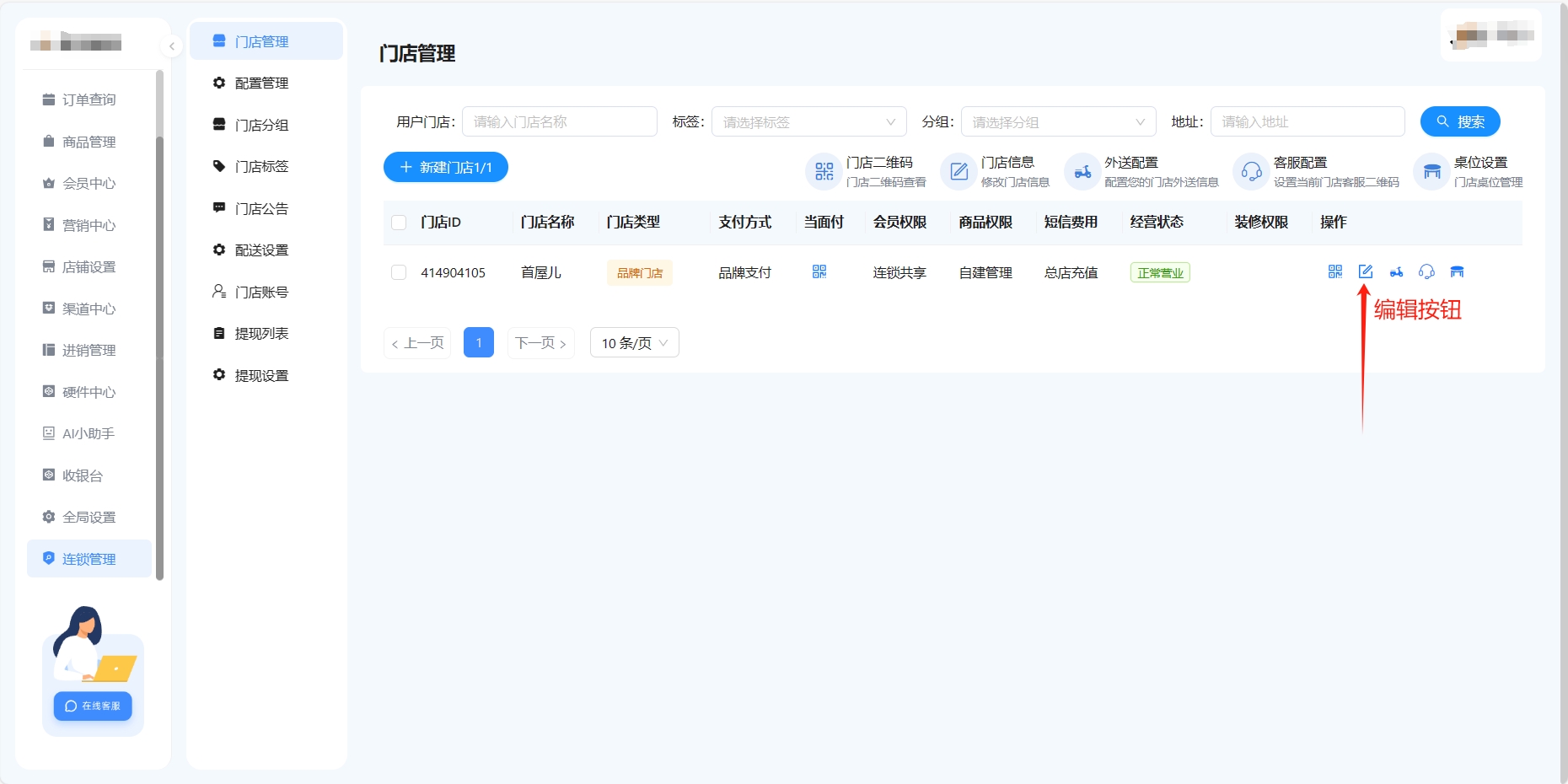 选择左侧菜单栏【连锁管理】-【门店管理】,点击门店右方的【编辑图标】进行设置。